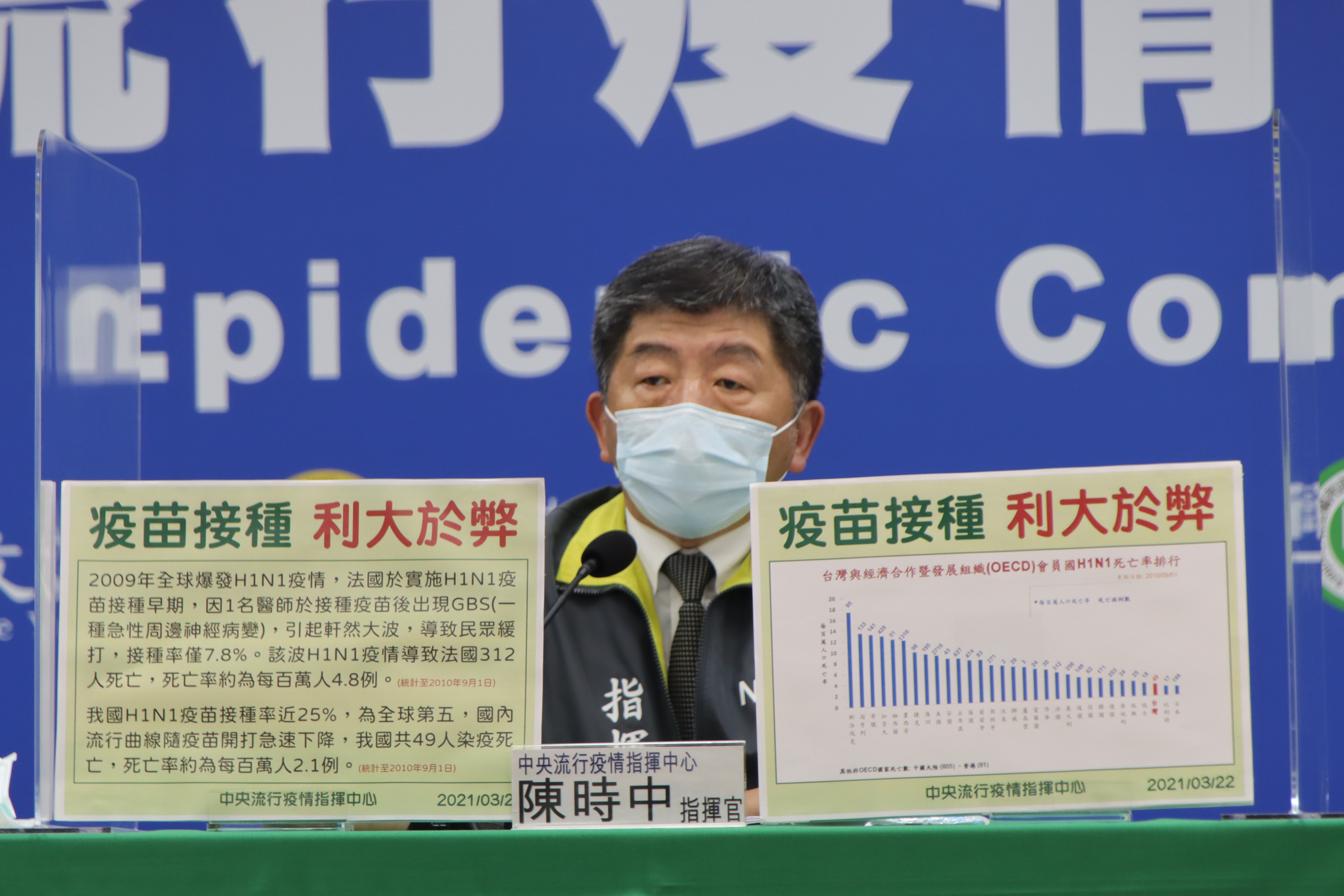 中央流行疫情指揮中心3月21日14:00記者會出席名單第一排從左到右中央流行疫情指揮中心 莊人祥 社區防疫組副組長中央流行疫情指揮中心 周志浩 疫情監測組組長中央流行疫情指揮中心 陳時中 指揮官中央流行疫情指揮中心 陳宗彥 副指揮官.